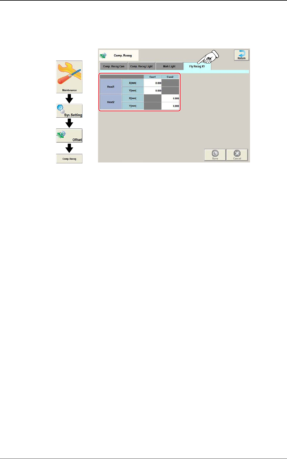 Wird der [Fly Recog XY]-Tab im Bildschirm "Comp. Recog" gedrückt, öffnet