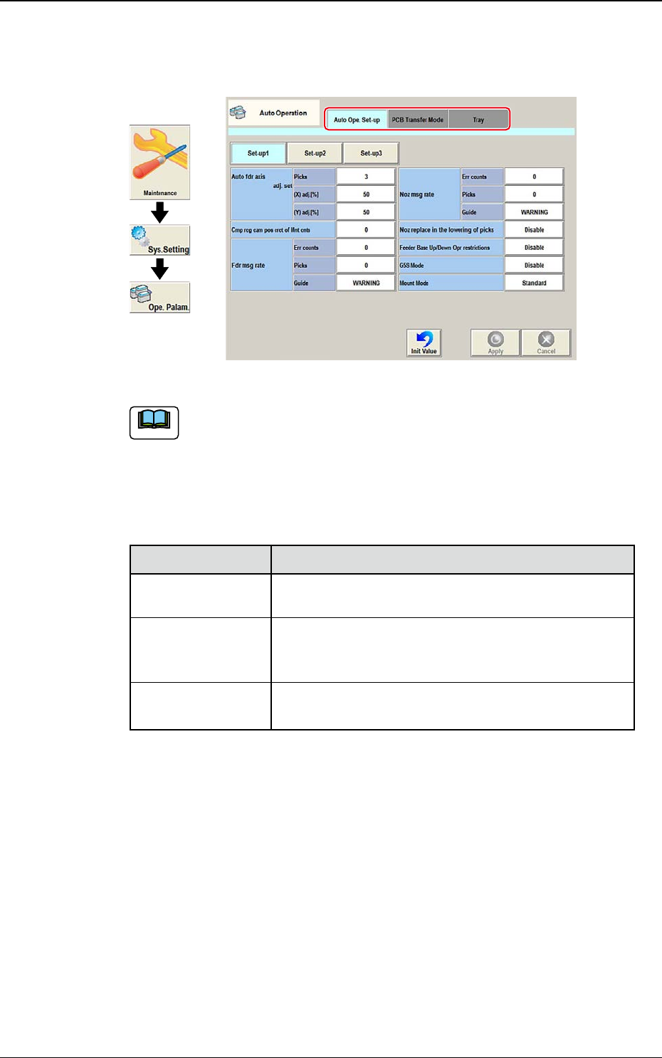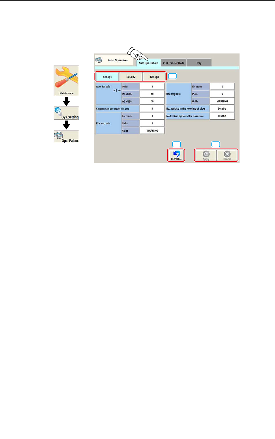 DEUKYX 2-70 193-3100 3. Auto Operation 3. Auto Operation Werden [Sys. Setting] - [Ope. Palam] gedrückt, erscheint der folgen de Bildschirm. Grafischer Ablauf F3B71 Hinweis Der Inhalt, der in der Registerkarte angezeigt w…