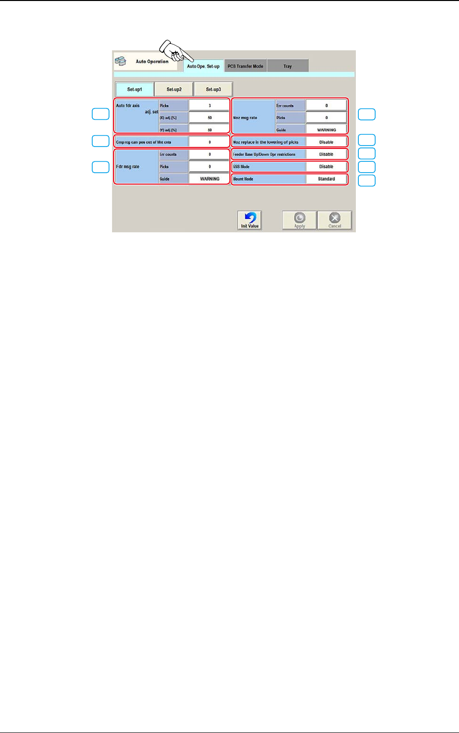 DEUKYX 2-72 193-3100 3.1 Auto Ope. Set-up n Set-up 1 [1] [2] [3] [4] [5] [6] [7] [8] F3B73 [1] Auto fdr axis adj. set picks [times] Legen Sie die Gesamtzahl der gesammelten Proben fest, wenn Daten aktualisiert oder geänd…