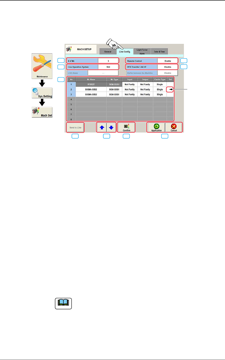 DEUKYX 2-90 193-3100 4.2 Line Cong. 4.2 Line Cong. Wird der [Line Cong.]-Tab im Bildschirm "MACH SETUP" gedrückt, öffnet sich der folgende Bildschirm. Grafischer Ablauf [2] [3] [4] [5] [6] [7] [8] [9] [1] Ve…