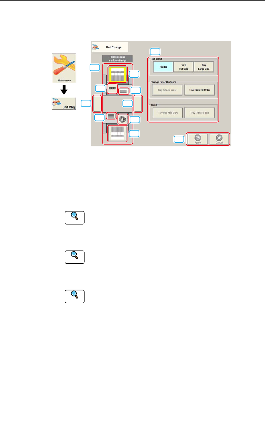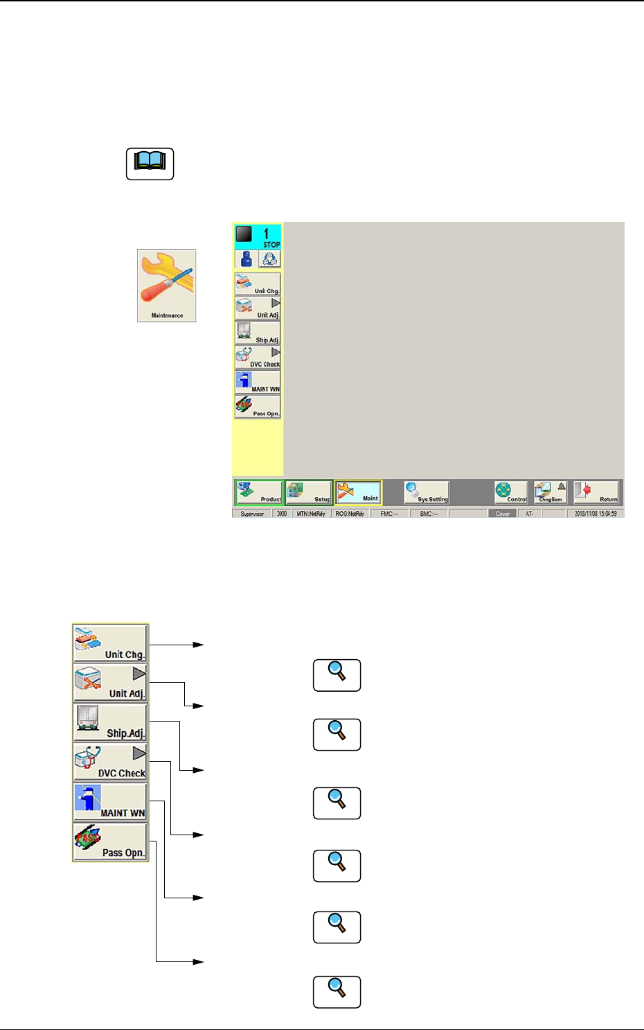DEUKYX 1-3 193-3100 2. MAINTENANCE 2. MAINTENANCE Mit diesem Bildschirm können Sie die Maschine justieren, die Leistung prüfen und verschiedene Teaching-Funktionen ausführen. Wird im Bildschirm "HAUPT"-Seite di…