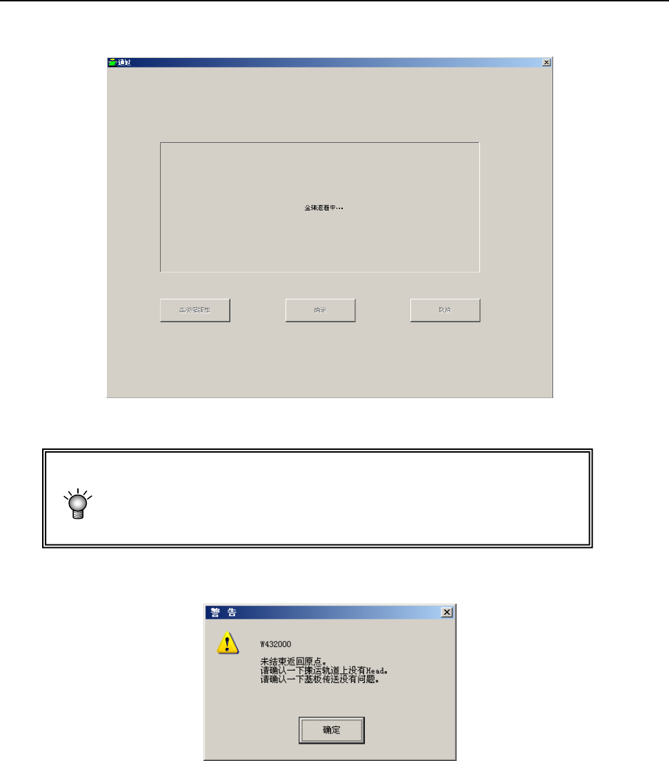 注1) 启动时若未完成返回原点时,会显示下列确认信息。