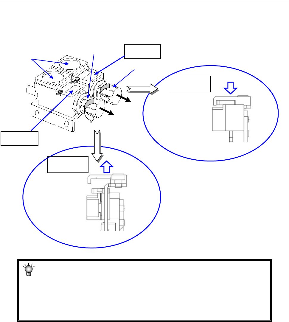 通过将减压阀的旋钮①(夹紧解除方向)与②(夹紧执行方向)向“A 方向”拉出旋转来增减压力。