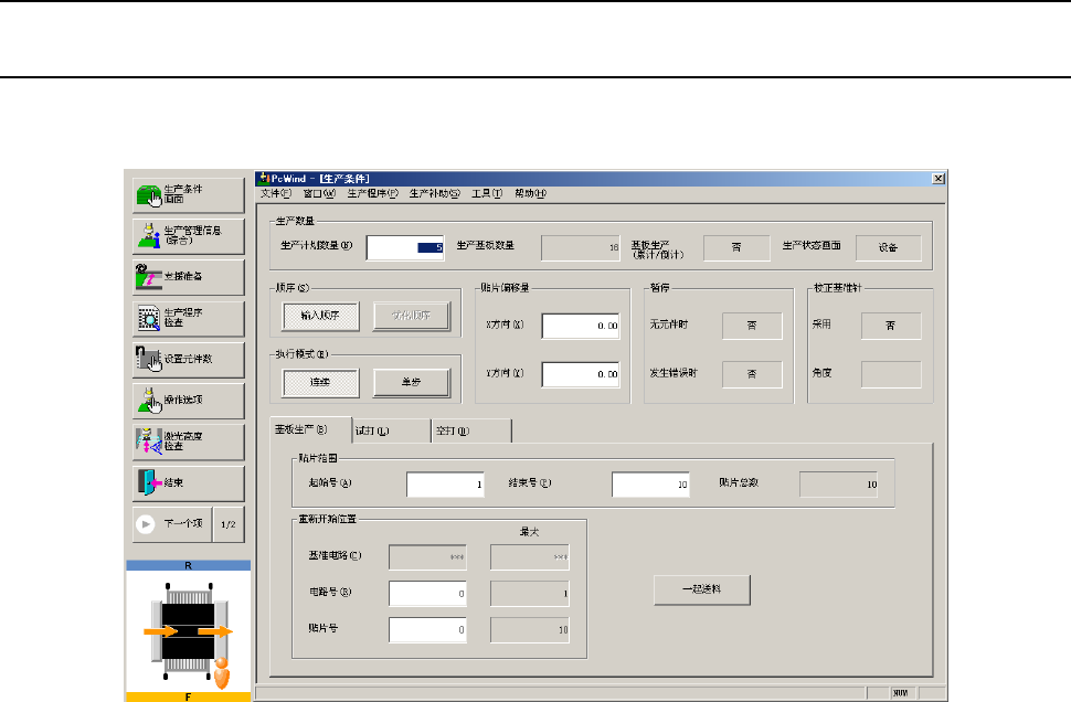 在主画面上选择[生产]-[基板生产],或功能栏的[基板生产],则会显示如下的生产条件设置画面。