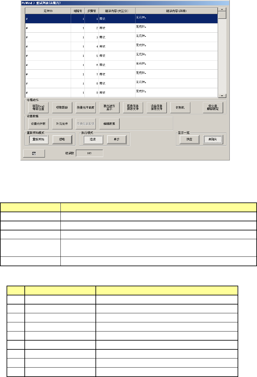 电路号 显示贴片失败的电路号。