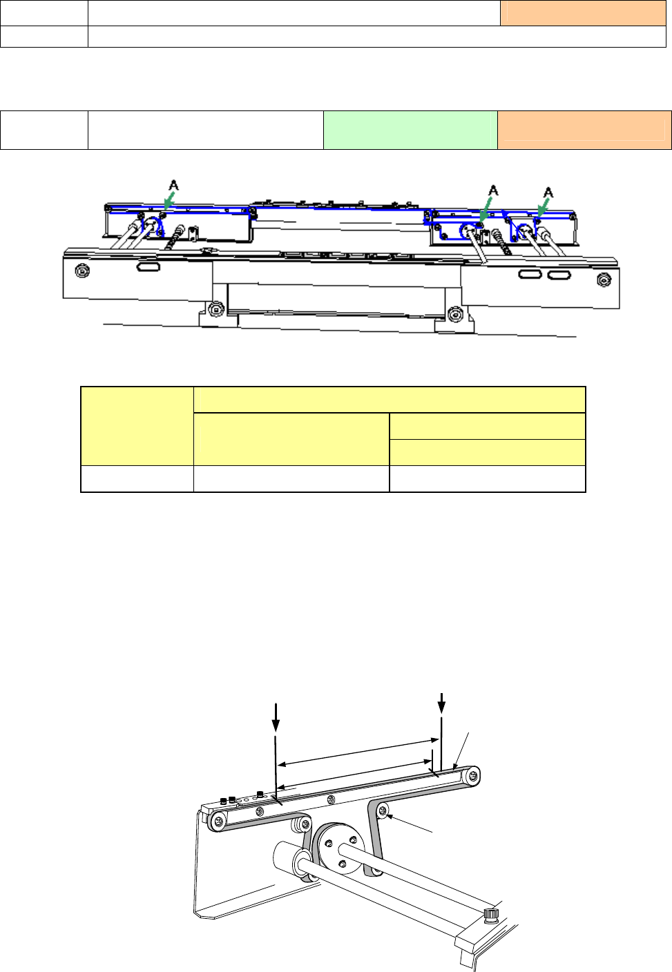 ② 按照与1)逆向步骤,转动「A部」的「传送滑轮」,撑紧传送带张力,在2处标记的间距达到201mm