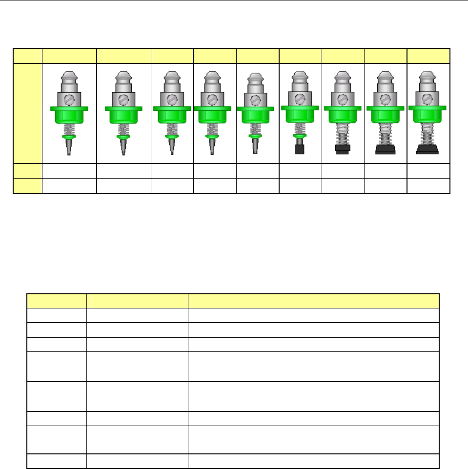 主要用途元件的吸嘴序号见下表所示。为提高精确性,请根据贴片元件吸取面的最小宽度选择吸