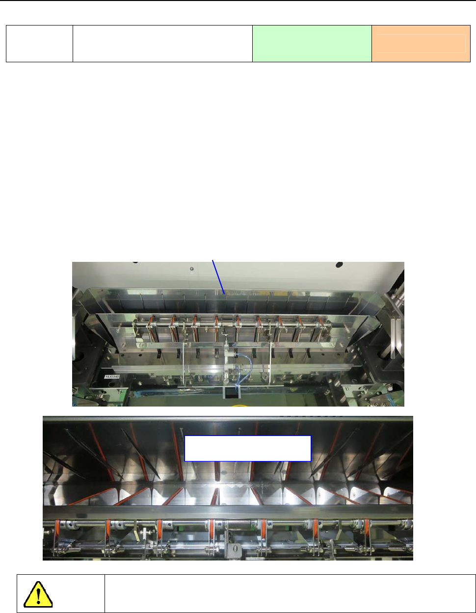 3) 请打开切带机组合件的上导轨,以目视确认切带机的刀刃已关闭(如断开装置主体的电源,切带
