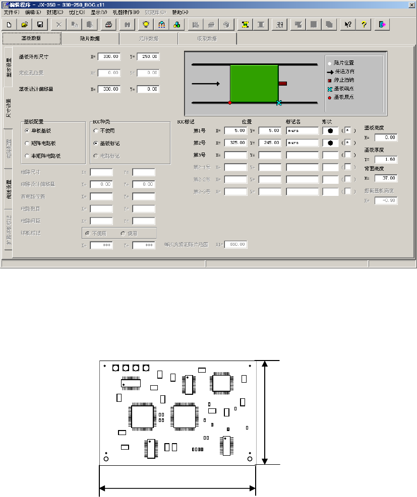 在生产程序中,用坐标来表示基板上的元件及标记的位置。