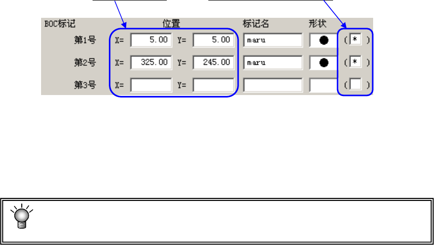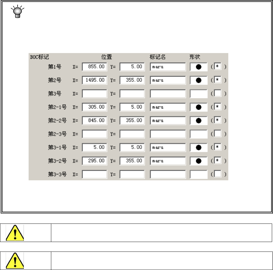 输入从基板位置基准(原点)或电路原点到各BOC标记的中心位置的尺寸。