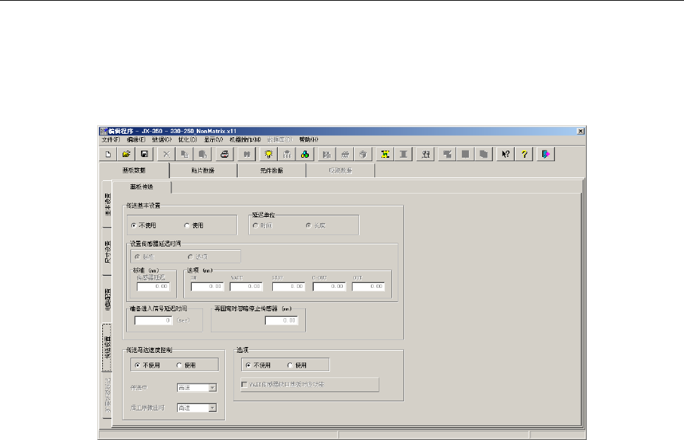 「传送设置」选项卡由“传送基本设置”、“传送马达速度控制”、“选项”等项目组成。