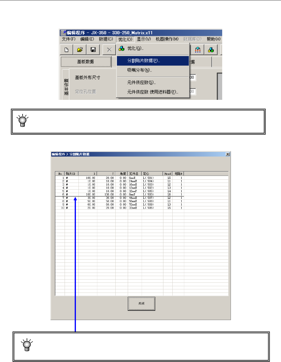 ● 本菜单在未进行优化时(分割文件不存在),或在优化后变更过生产程序时,