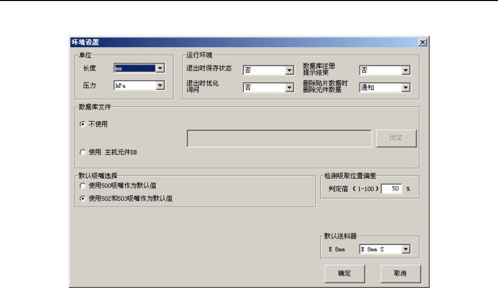 第 1 部 基本篇 第 4 章 制作生产程序 4-168 4-5-3 环境设置 设置编辑程序的环境。 从菜单栏中选择「文件」 / 「环境设置」,显示设置画面。 (1) 单位 选择编辑时的长度、压力的显示单位。 ● 长度 … 从 mm 、 1/100mm 、 inch 中选择。 ● 压力 … 从 kPa 、 Level( 大气压 ) 中选择。 (2) 运行环境 1) 退出时保存状态 选择是否保存退出编辑程序时的状态,在下次启动时重新显示。…