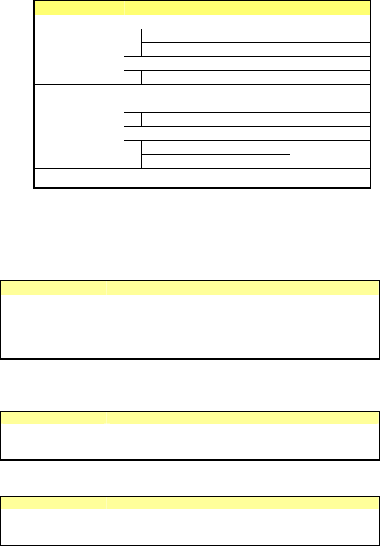 各种测量项目的功能概要如下表所示。