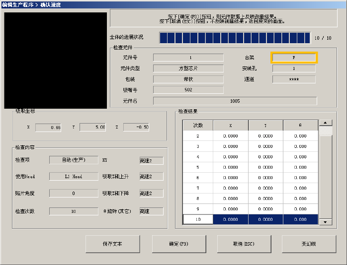 使检查结果成为有效值,并将结果存入元件数据中。然后返回原来的确认速度画面。
