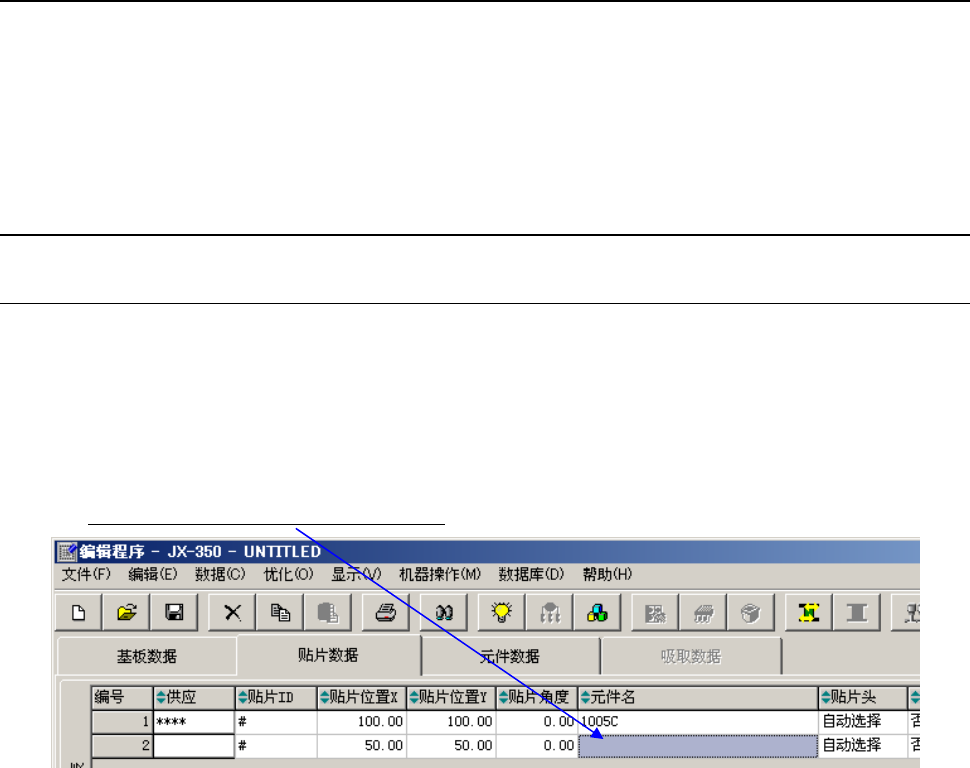 元件名已被注册到数据库时,只要在「贴片数据」中输入元件名,数据库的内容即被注册到正在