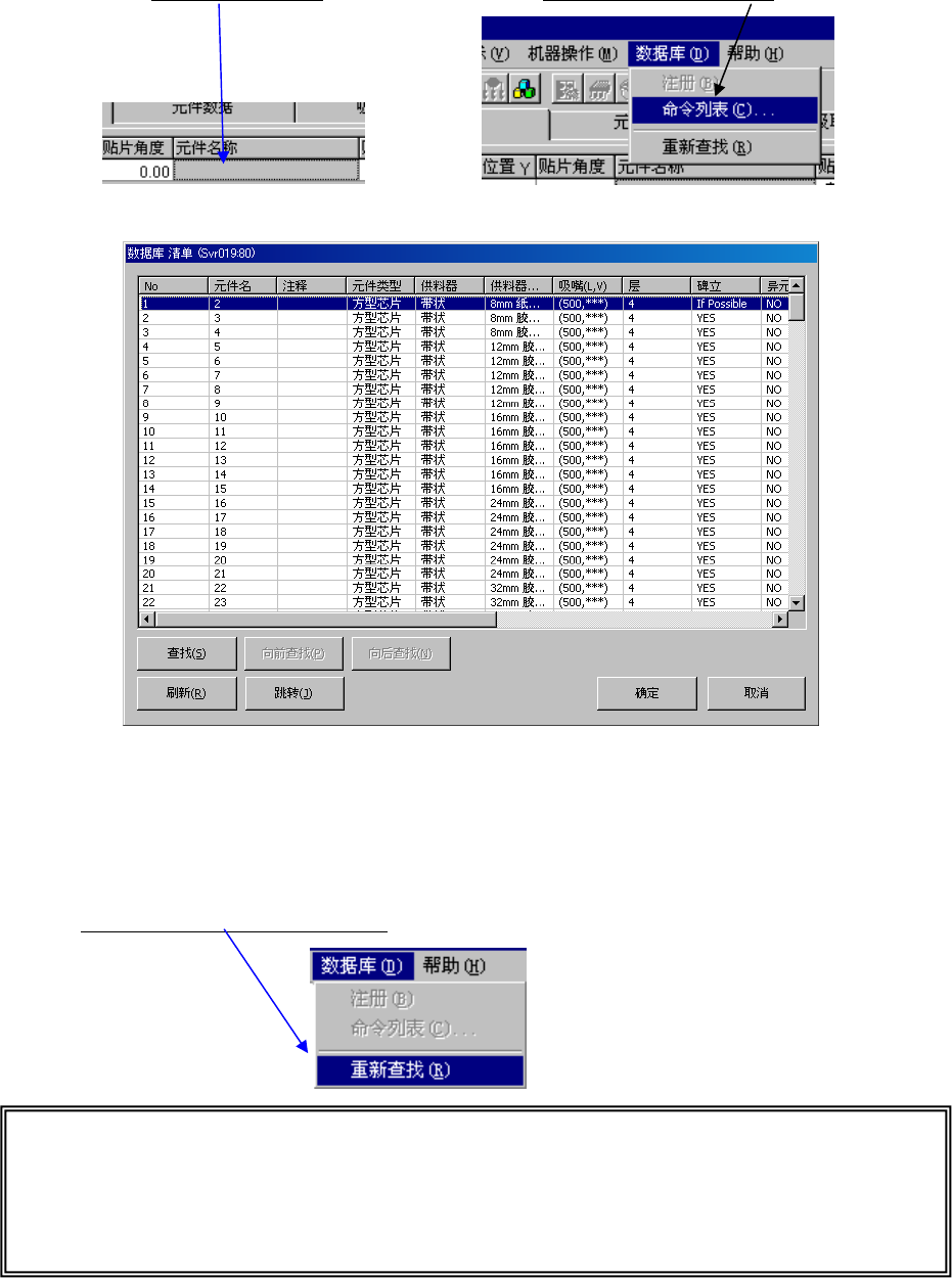 ※ 重新查找:对数据库和贴片数据的元件名进行核对,有相同的元件名时,从数据库中