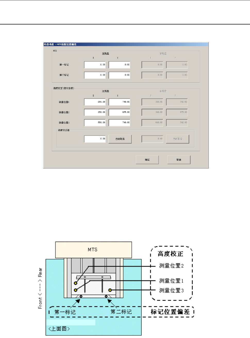 设置MTS第1标记和第2标记相对于设计位置的偏差,以及托盘垫面高度校正值。