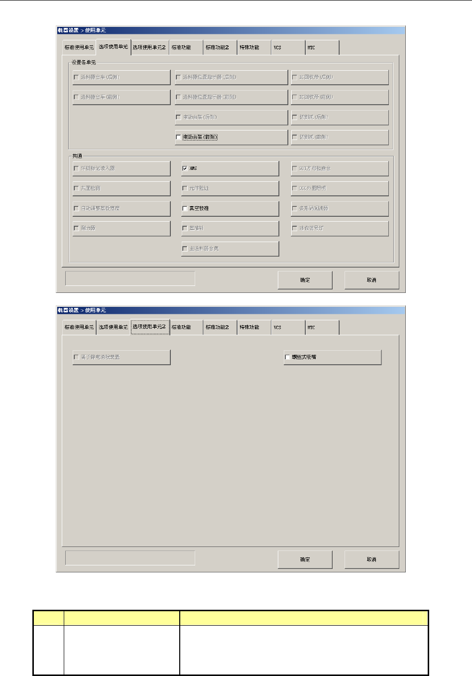 生产程序为完成贴片需要上述单元时,是否实际进行贴片,如下表显示。