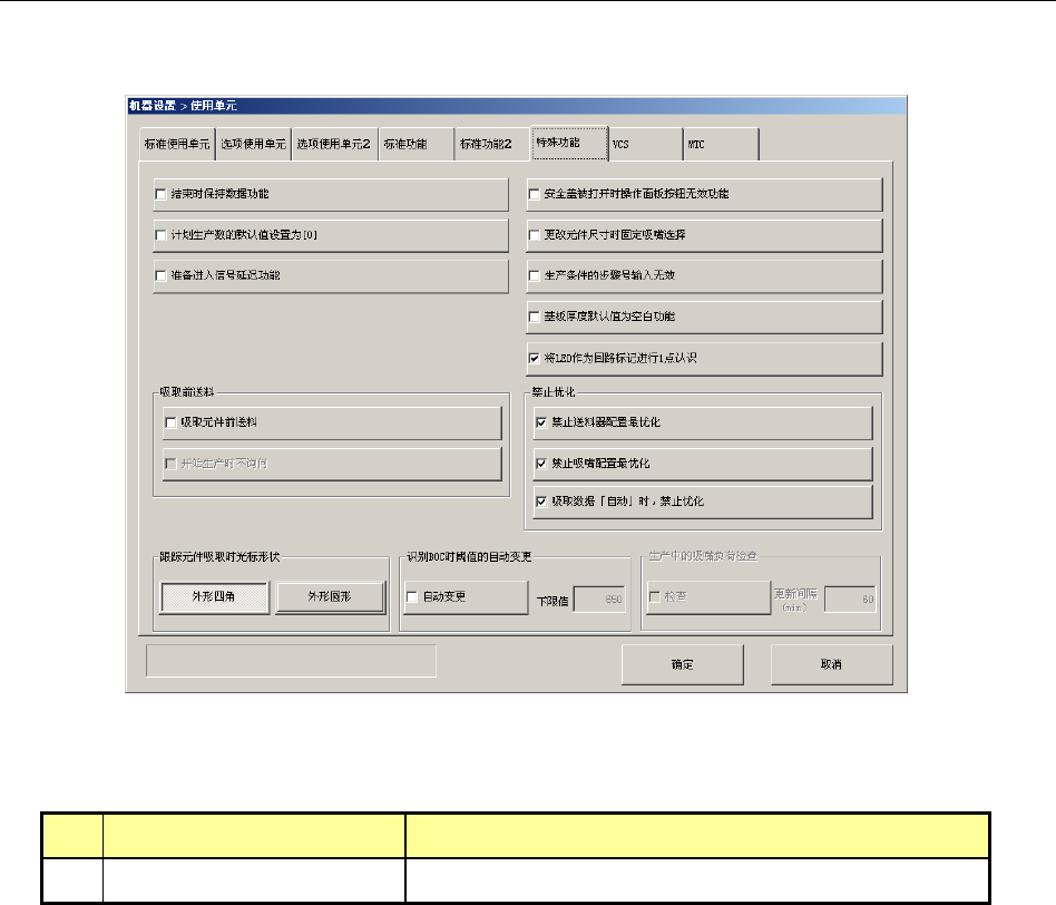 第 2 部 功能详解篇 第 7 章 机器设置 7-34 7-4-10-4 特殊功能 在不同的使用条件下,可利用有效的特殊功能。 如特殊功能不适用时,可将特殊功能设为 “ 不使用 ” 。默认为 “ 不使用 ” 。 (1) 设置项目 设置特殊功能的使用与否。 No. 项目 设置项目 1 使用单元 ( 特殊功能 ) 设置各功能的使用或不使用。