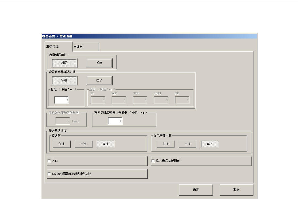 选择传送设置后,会显示下列画面。选择支撑台的选项卡时,显示如下画面。