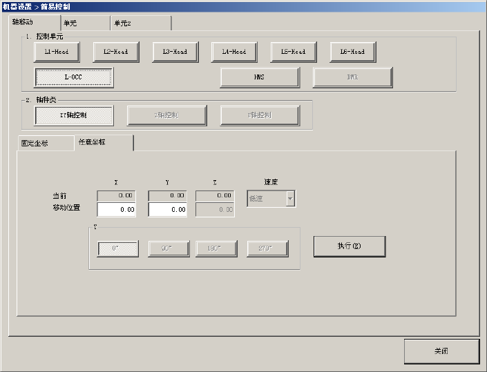 选择「执行」后,可使[任意坐标]移动到指定位置、控制单元基准,并按指定速度进行轴移动。