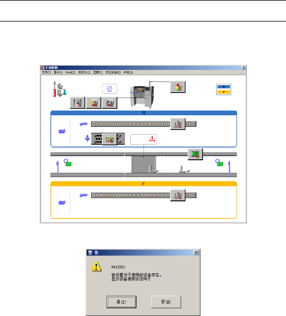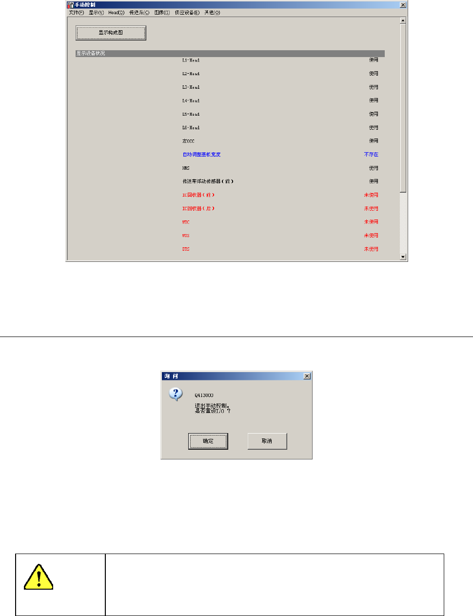 第 2 部 功能详解篇 第 8 章 手动控制 8-3 点击 [ 显示构成图 ] 按钮, 或选择菜单栏的 「显示」 → 「显示构成图」 ,即可返回到初始画面 (构成 图) 。 8-2-2 退出手动控制 依次点击菜单栏中的 [ 文件 ]-[ 退出 ] , 或按下画面右上方的关闭按钮 [ × ] , 或按下工具栏中的退出按钮, 可退出手动控制。 「确定」:执行 I/O 安全方向设 置后退出。例如, Head 带有吸嘴时,将吸嘴放回 ATC 后…