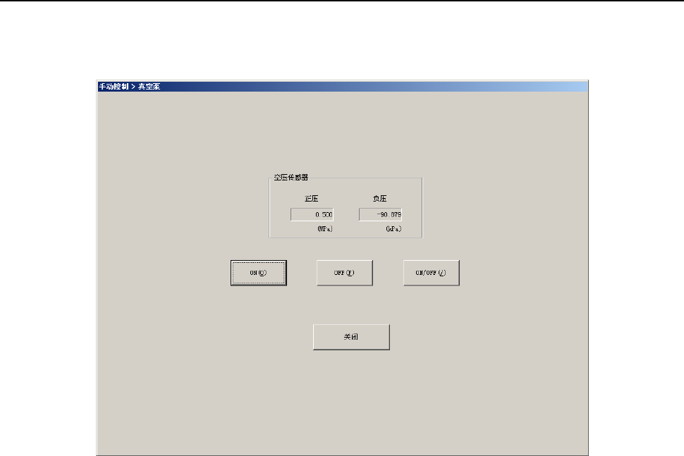 从下拉菜单中选择[其他(O)]-[真空泵控制(P)],或选择命令按钮中的[真空泵控制]后,可显示真空泵控