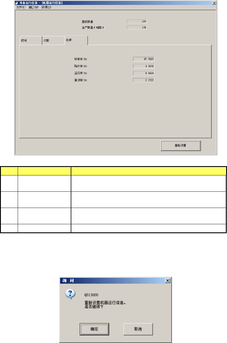 在机器运行信息画面内点击[比率]选项卡后,可显示机器运行信息(比率)画面。表内项目如下。