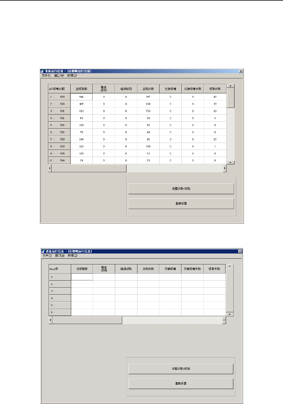 在列表中显示各吸嘴的运行次数及相关的数据。