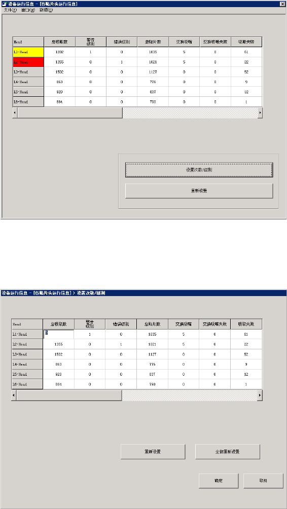 按下[设置次数/级别]按钮,或从菜单栏选择「数据(D)」→「设置 - 各 Head 运行信息」,即