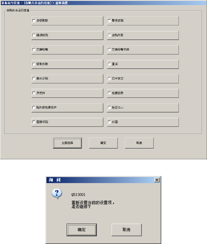 7)点击[全部重新设置]按钮,可对所有的数据(所有的供料器台架)执行重新设置。点击询问信