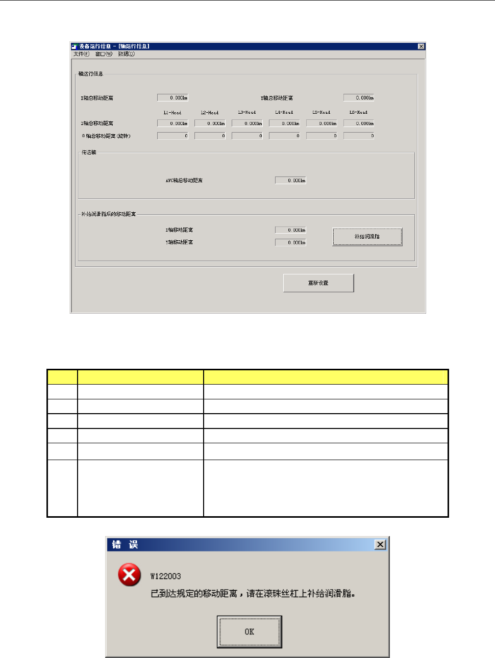 补充润滑油后移动距离 补充润滑油后的 X 轴、Y 轴的移动距离累计。