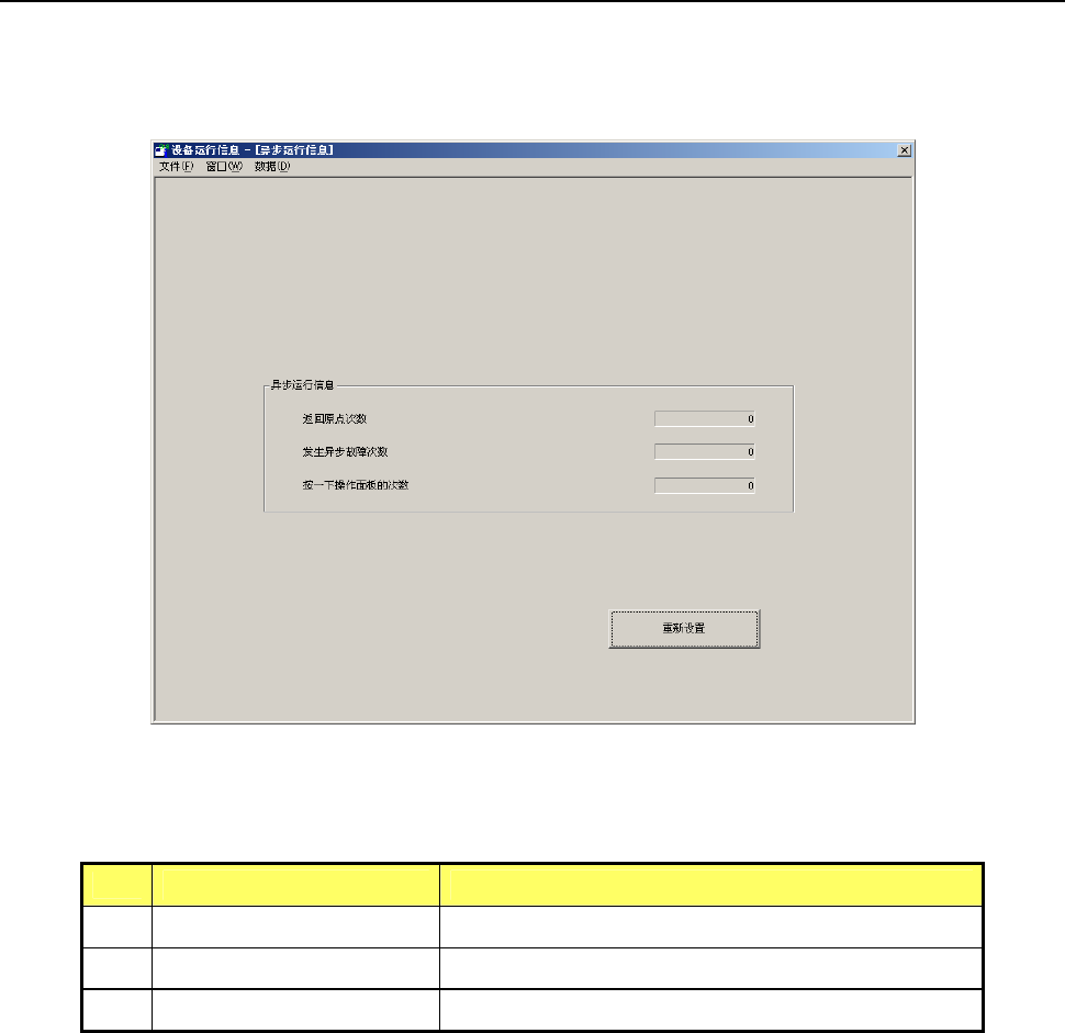 第 2 部 功能详解篇 第 9 章 设备运行信息 9-27 9-4-10 异步运行信息 从下拉菜单中点击 [ 窗口 (W)]-[ 异步运行信息 ] ,或从命令按钮中点击 [ 异 步运行信息 ] 后,可显示异步 运行信息画面。 异步故障包括驱动 RAM 、主机异常停止、供料器浮动、 XY 界限值等错误。 (1) 异步运行信息 No. 项目 内容 1 返回原点次数 进行返回原点的次数累计。 2 发生异步故障次数 发生异步错误的次数累计。 3…