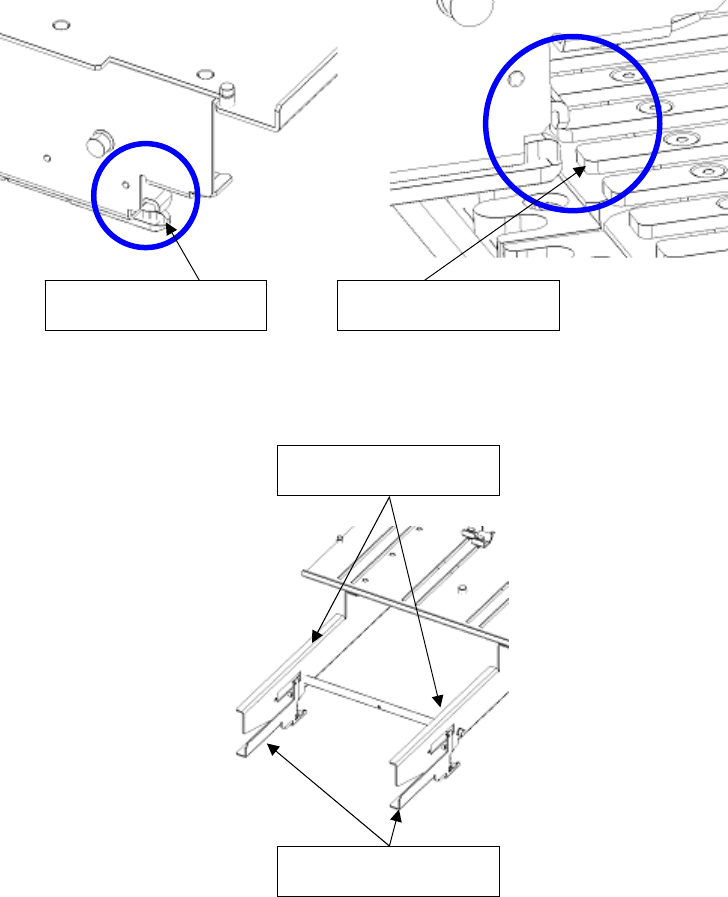1) 把滑轨前端处插入后侧台架的导轨槽。