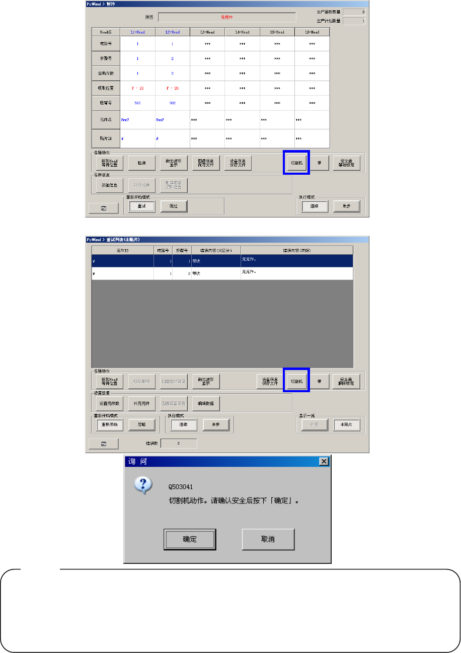 按下[切割机]按钮后,将显示警告信息,此时若按下[确定]即进行切割动作。