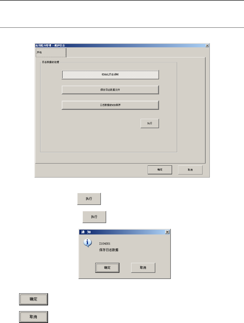 第 2 部 功能详解篇 第 13 章 程序补充 13-25 点击[日志数据的 USB 保存],按 ,则显示确认信息框。 点击 按钮则执行保存。点击 则不保存并返回。 保存结束则显示信息框。
