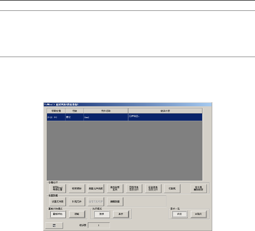 第 1 部 基本篇 第 2 章 生产 2-91 2-11-4 重试列表 2-11-4-1 概要 生产结束后, 从下拉菜单选择 [ 生产程序 ] - [ 重试列表 ( 供应装置 )] 或选择 [ 生产程序 ] - [ 重试列表 ( 未贴 片 )] 时,可分别显示两个站点执行生产时发生的错误内容。 生产中发生重试错误时会显示重试错误,以供判断是继续生产、还是中断生产。 2-11-4-2 显示 ・ 选择显示一览后,列表的内容将变化显示出供应装…
