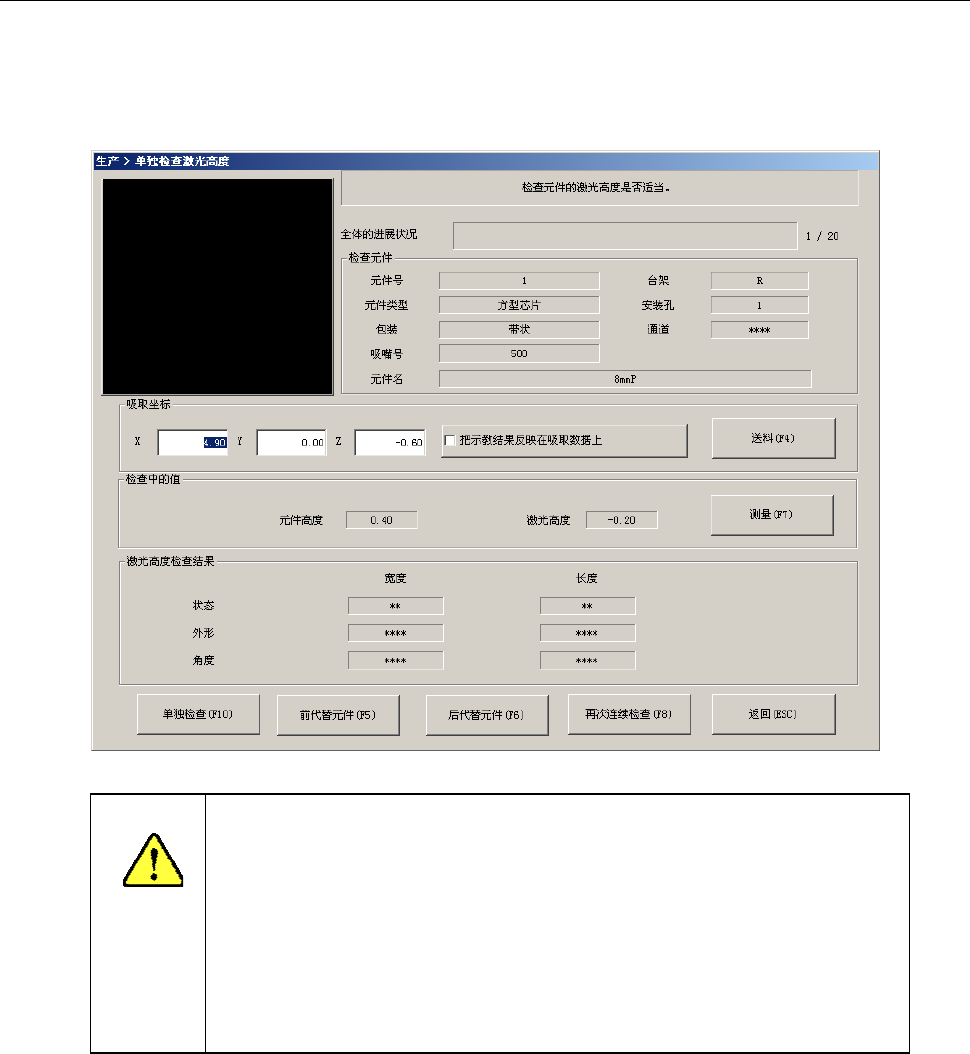 连续检查激光高度中,显示正在进行连续检查激光高度的元件内容/吸取位置/激光高度,依次显示