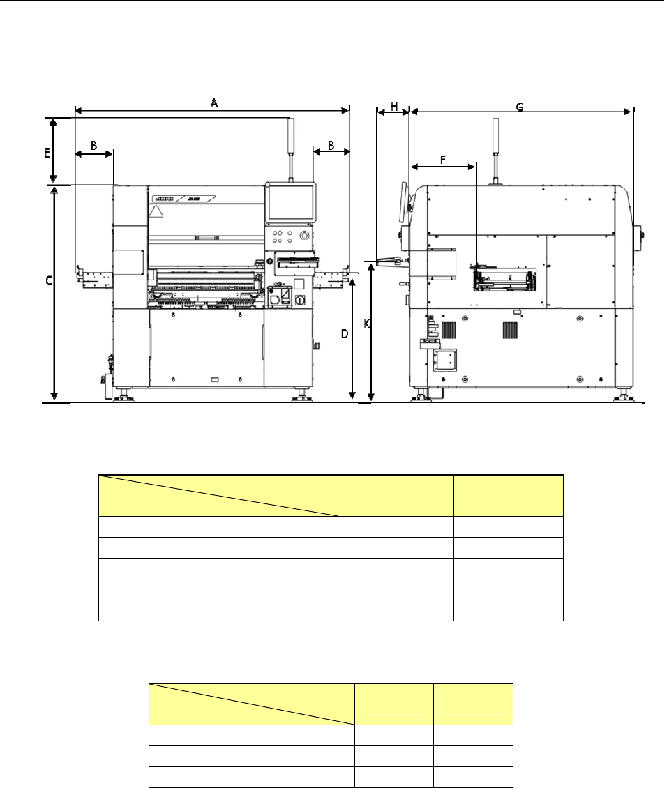 第 1 部 基本篇 第 1 章 装置概要 1-19 1-3 机械规格 1-3-1 机械尺寸与重量 ( 1 )机械尺寸 单位 :mm 基板规格 尺寸 标准规格 长尺寸规格 A (传送长度 ) 1,920 2,520 B (传送出量 ) 260 560 E (信号灯高度) 470 470 F (从护罩前面至基板传送通道) 484 484 G 装置内侧(不 含突起部分) 1,580 1,580 ※上述尺寸的公差为± 5m m 。 单位: mm…