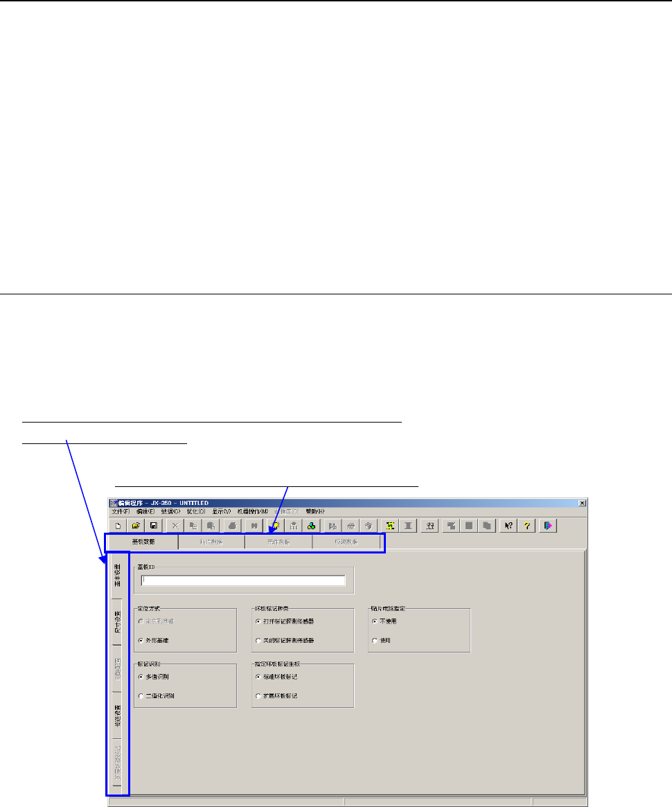 第 1 部 基本篇 第 4 章 制作生产程序 4-8 4-3-3 基板数据 基板数据由「基本设置」、「尺寸设置」、「电路 设置」、「传送设置」、「扩展坏板标记」 5 个项目构成。 ● 基本设置: 输入基板的基本构成。 ● 尺寸设置: 输入基板的详细尺寸。可按照「基本设置」中的指定改变显示项目。 ● 电路配置: 指定电路的位置与角度、贴片电路的项目。 只限于「基本设置」中 " 贴片电路指定 " 已设置为 " …