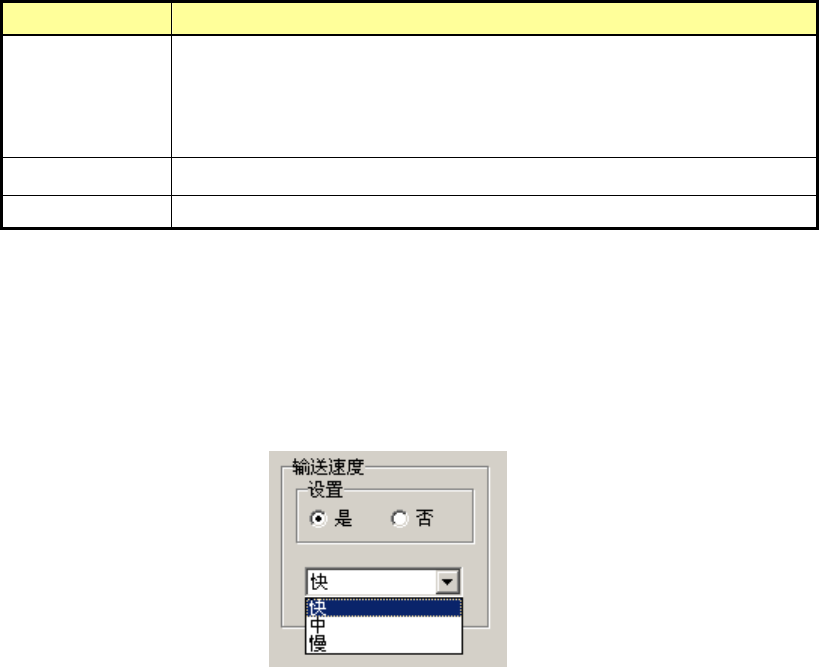 设置电动式供料器的间距输送速度。要变更输送速度时,设置选择“是”,从下拉列表中选择“高速”、