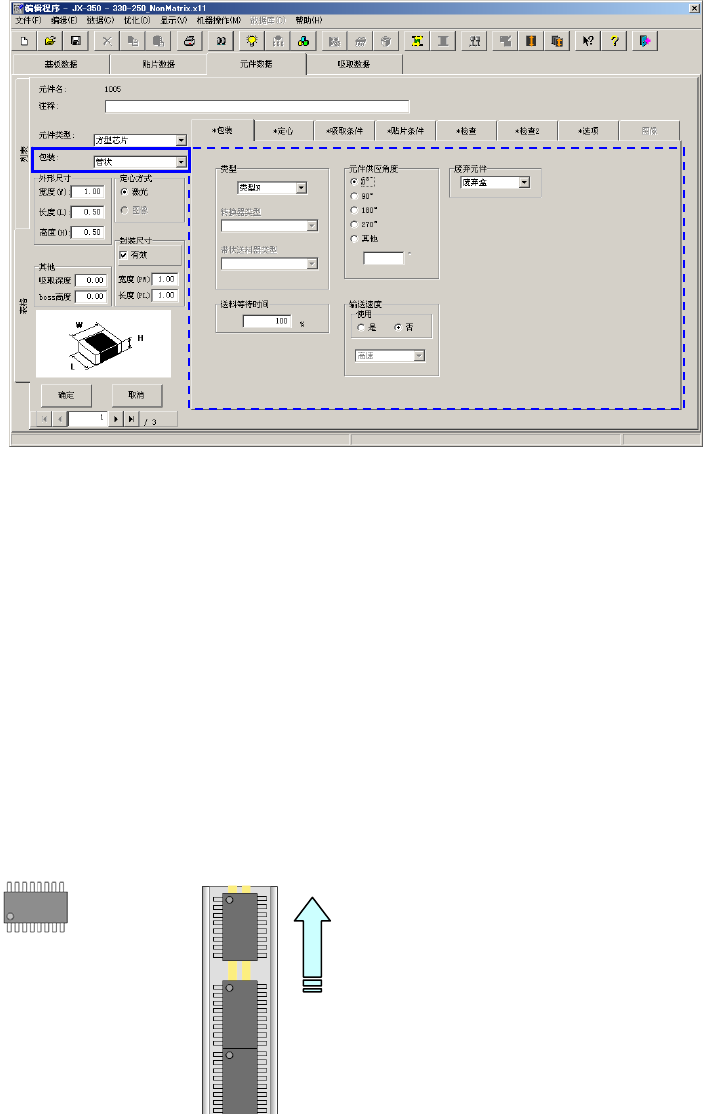 以JUKI的元件供应角度为0°,输入管状供料器上的元件包装姿势的倾斜角度。