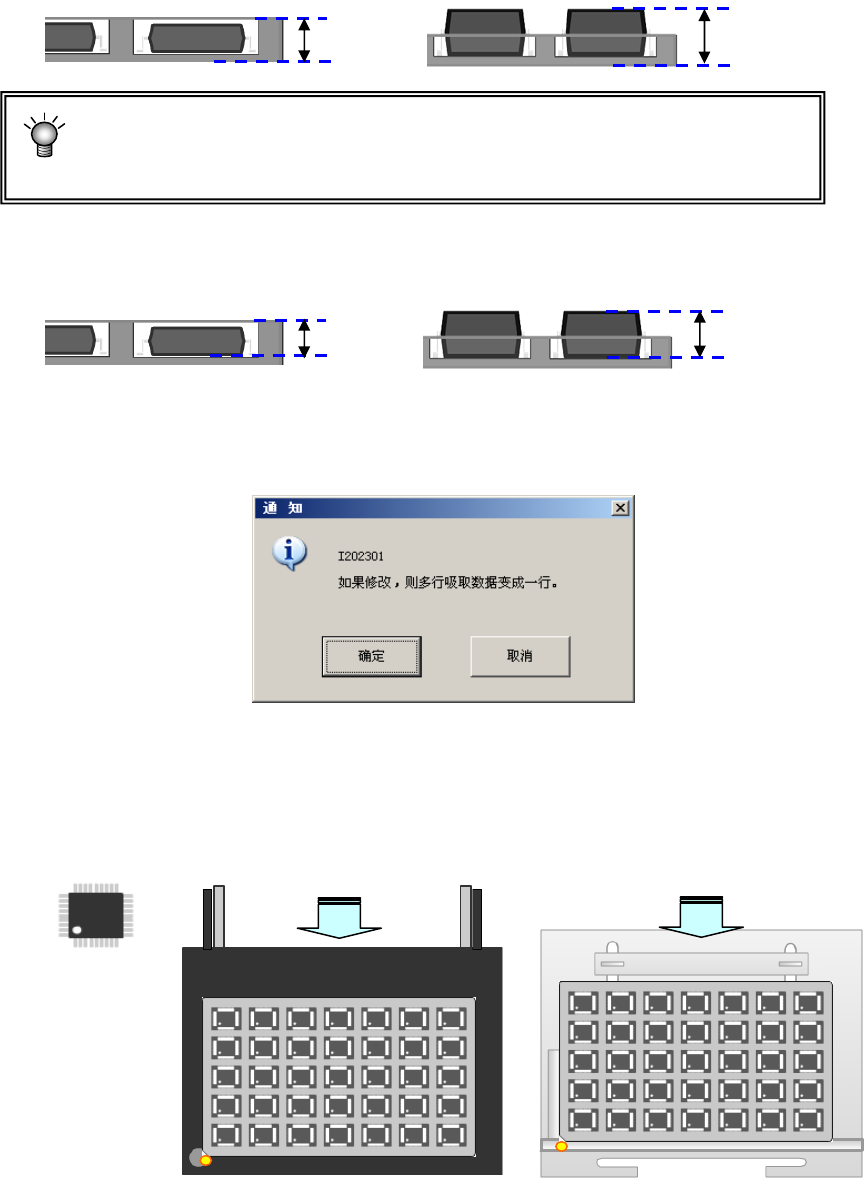 第 1 部 基本篇 第 4 章 制作生产程序 4-63 4) 托盘厚度 输入包括元件在内的托盘背面到表面的托盘厚度 T 。 如果 MTS 上的托盘厚度 T 超过 9mm 时,该层上不能安装托盘底座。 托盘厚度 T 的最大尺寸,在 MTS 上为 23mm 。 5) 托盘深度 输入托盘的深度。 6) 元件供应装置 从 “ 托架 ” 、 "MTS " 中选择供给装置。 ※ DTS 、 MTC 、 MDS 不能设定。 如果吸…