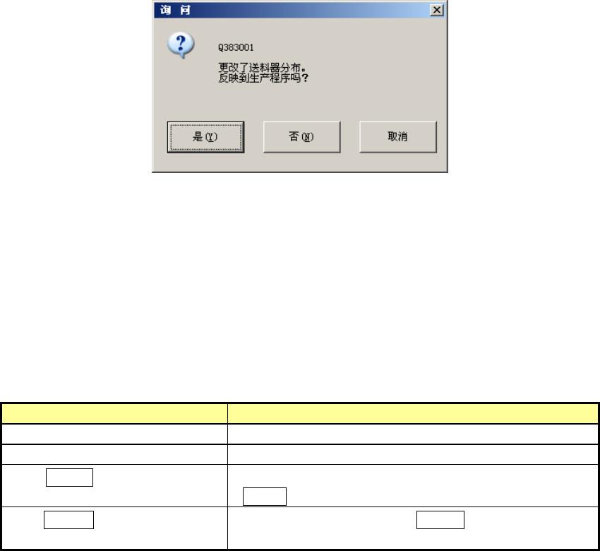 编辑后关闭供料器分布画面时,会显示下列信息,询问是否把编辑内容反映到程序数据中。