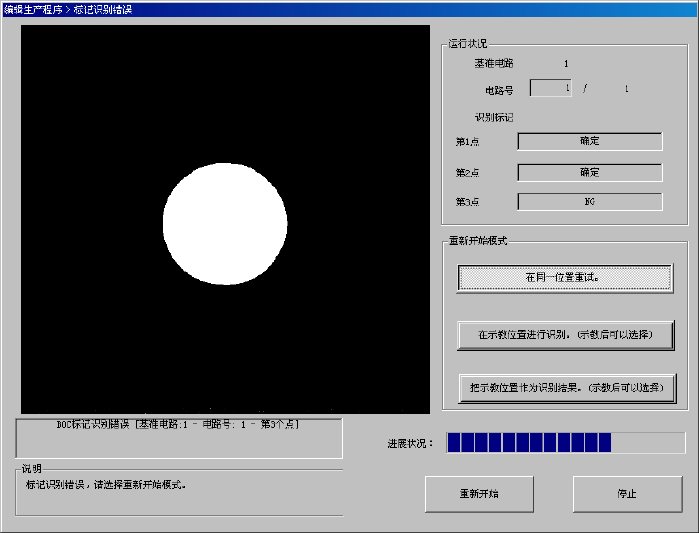 在执行中 BOC 标记识别失败时,会在画面的[说明]栏中显示提示信息,可以选择[重新开始模式]项目。