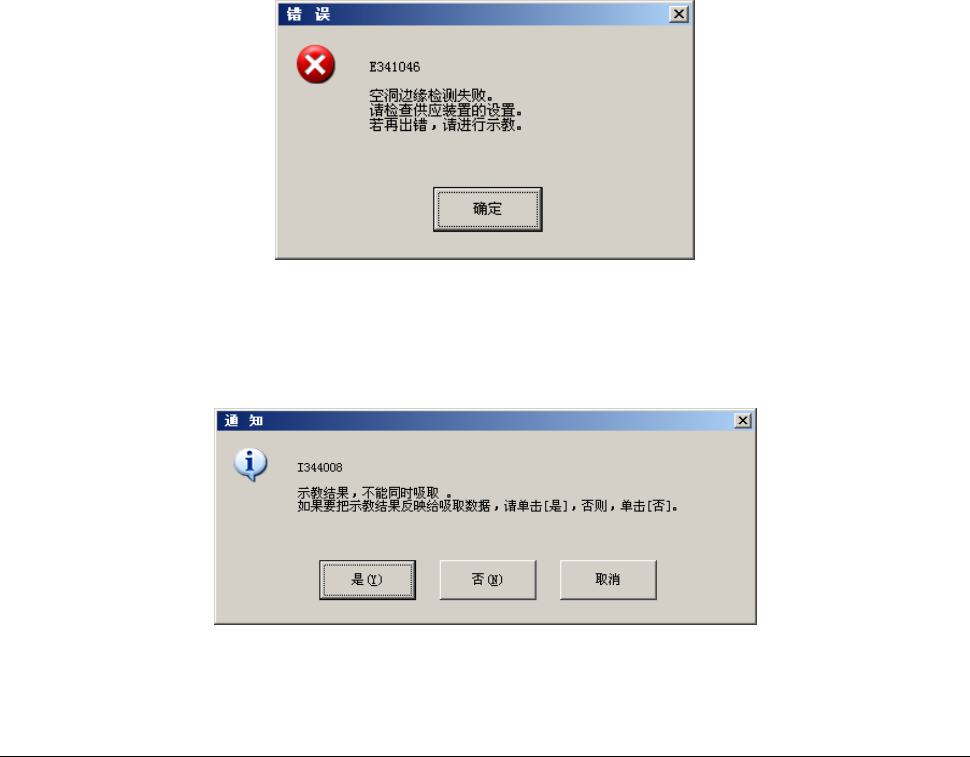 设置的吸取数据与自动示教校正的吸取数据差距过大时,显示如下错误提示。