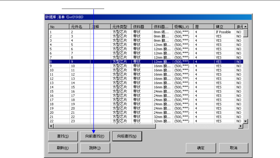 第1部 基本篇 第5章 数据库 5-8 5-1-3-3 向前查找 在菜单栏中,单击「向前查找」。 显示当前显示的元件数据以前的、符合查找条件的元件数据。