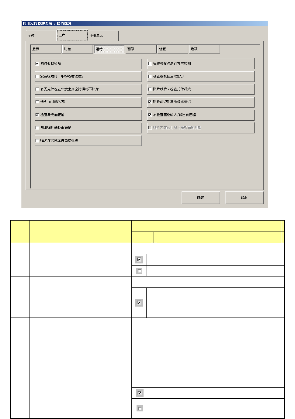 按下[运行]按钮后,显示“生产运行选项设置画面”。