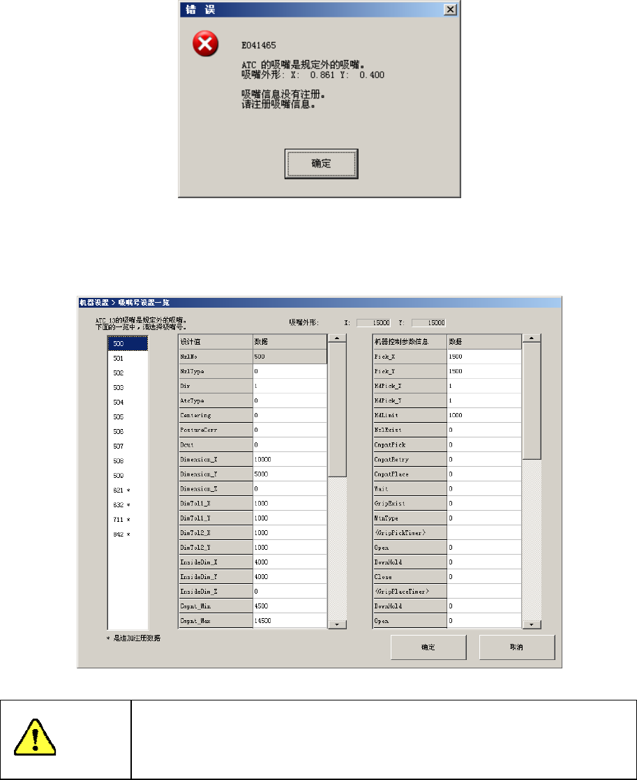注 1) 如获得的吸嘴外形在规定范围外,当没有符合该吸嘴宽度的吸嘴时,画面将显示如下